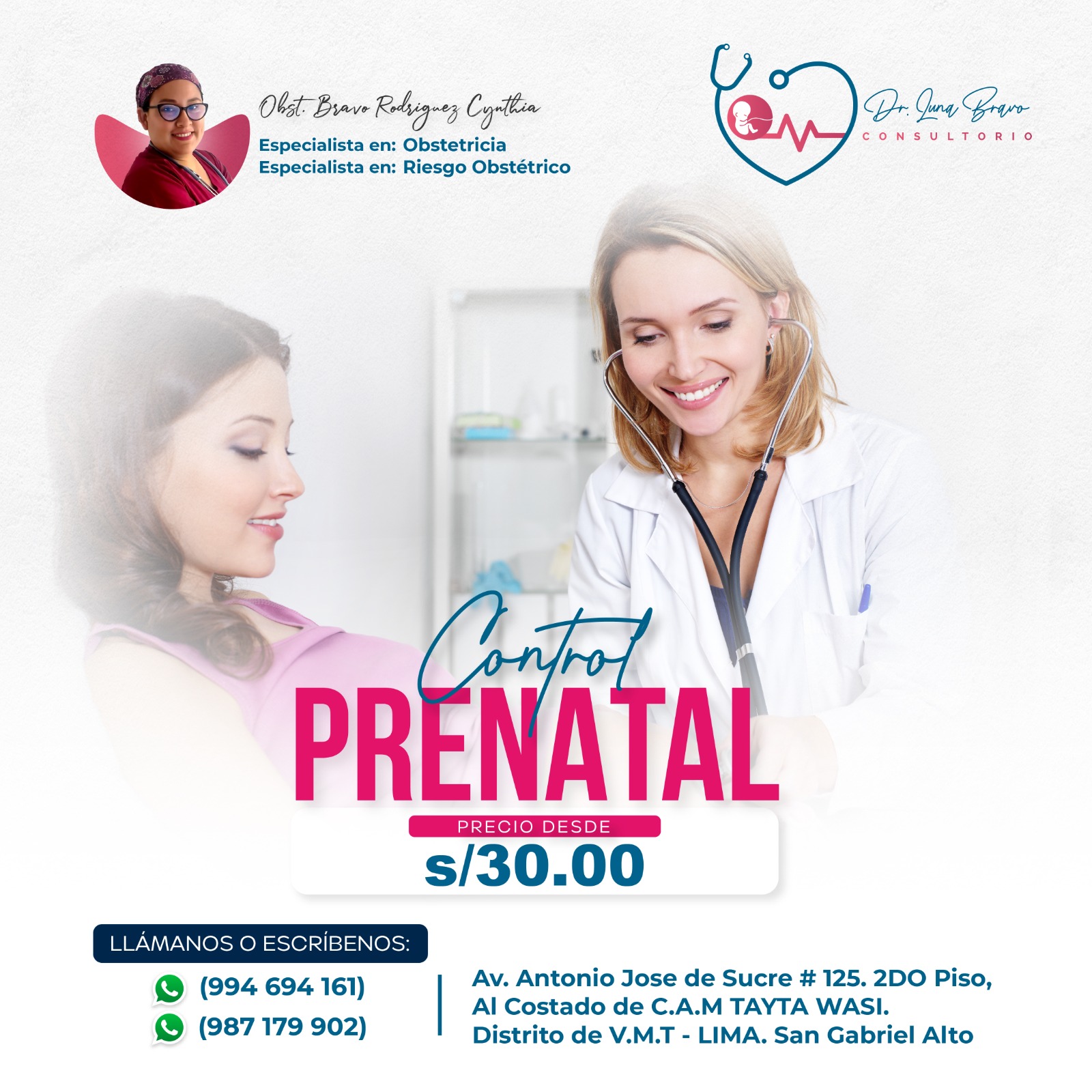 DESEAS COMENZAR TU PRIMER CONTROL PRENATAL, TE BRINDAMOS TODO LO NECESARIO PARA QUE TE SIENTAS INFORMADA Y SEGURA EN TU EMBARAZO. PORQUE CADA ETAPA ES IMPORTANTE, CONTAMOS CON LA EVALUACION DE PROFESIONAL CAPACITADO: GINECO-OBSTETRA, MEDICO GENERAL, OBSTETRA ESPECIALISTA EN RIESGO OBSTETRICO Y PSICOLOGIA. ADEMAS DE ECOGRAFIAS ESPECIALIZADAS Y...